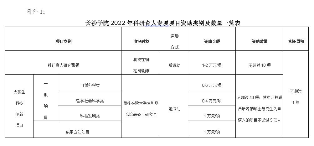 1.长沙学院科研育人专项项目资助类别及数量一览表