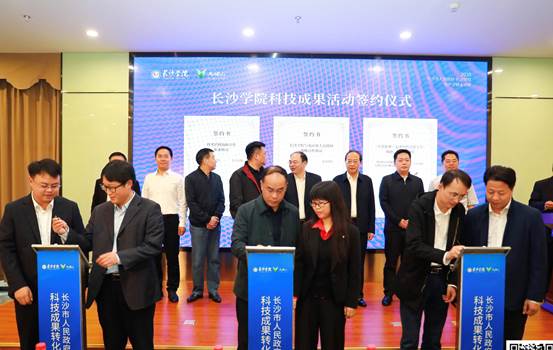9月29日上午,长沙市人民政府—长沙学院科技成果转化对接活动在马栏山视频文创产业园众创园一楼多功能厅隆重举行。长沙市科技局党组书记、局长郭塨,马栏山视频文创产业园党工委书记邹犇淼,我校校长杨小云等出席活动。活动由副校长胡石明主持。