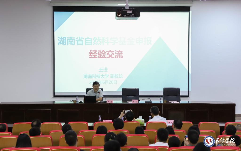6月20日下午,我校在长智楼C501会议室举办自然科学基金项目申报专题培训会。湖南省自然科学基金委员会办公室主任杨剑、湖南科技大学副校长王进应邀作专题辅导报告。党委委员、副校长张世英主持培训会,学校相关二级学院班子成员、教师代表、2024年新进博士等200余人参加培训。