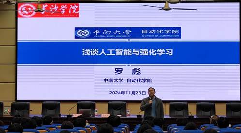罗彪教授在致远楼学术中心面向2024级选修《大学生学习指导与专业学习导论》课程的近400名学生开展了题为“浅谈人工智能与强化学习”的专题讲座。讲座中,罗彪教授从人工智能的基础概念和发展历程出发,逐步深入到强化学习的核心原理、算法框架及实际应用案例,并结合其团队的研究成果,运用生动的案例与形象的比喻,将复杂的强化学习算法化繁为简,使同学们得以直观领略强化学习的独特吸引力。讲座最后,罗彪教授勉励同学们积极拥抱人工智能时代,培养跨学科的思维方式,为未来的科技创新贡献力量。