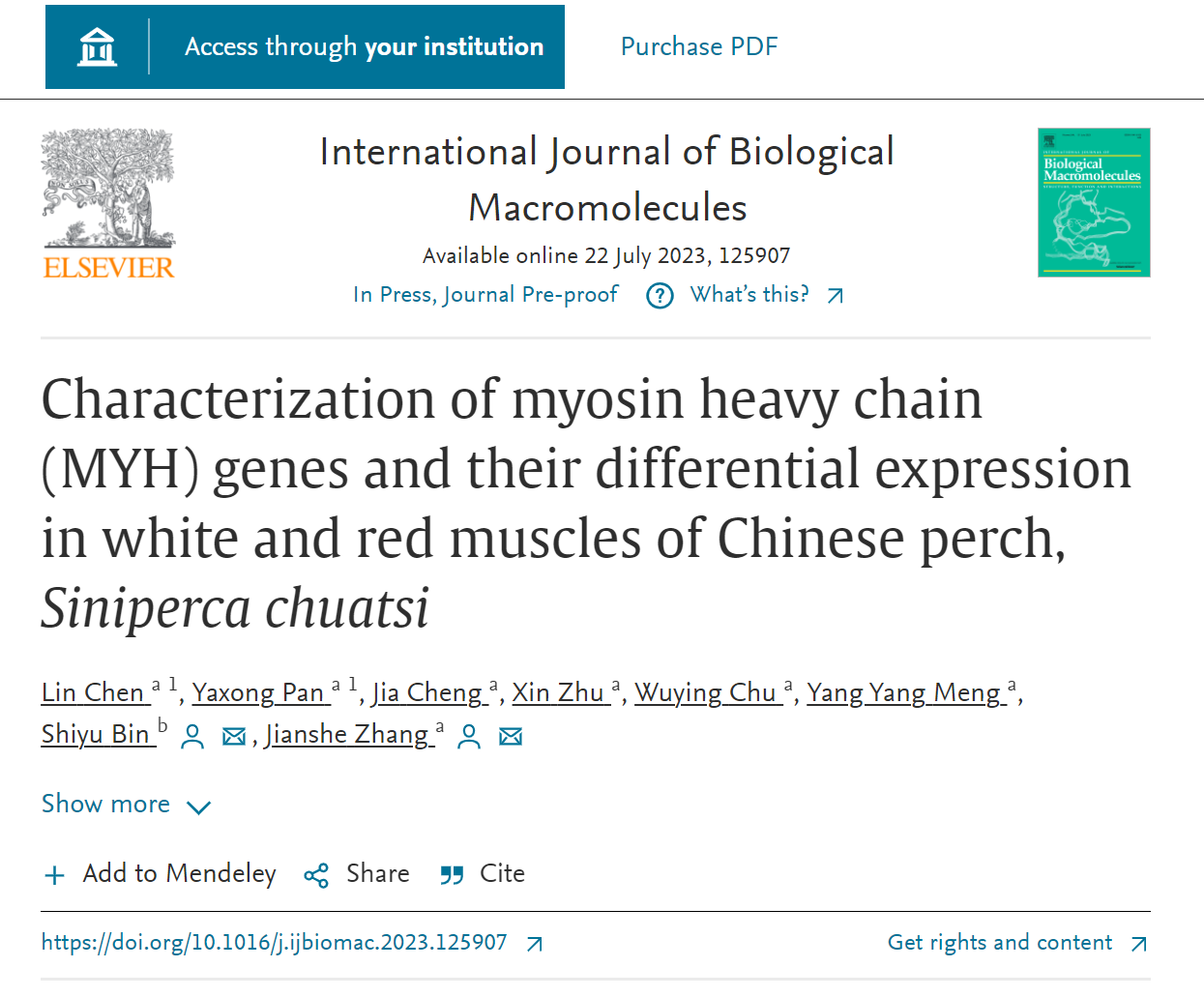 近日,我校鳜鱼肌肉发育与品质调控团队在国际权威期刊《International Journal of Biological Macromolecules》(中科院Top 1区,影响因子8.2)在线发表了“Characterization of Myosin Heavy Chain (MYH) Genes and their Differential Expression in White and Red Muscles of Chinese Perch, Siniperca chuatsi”的研究论文,陈琳和潘亚雄为该论文共同第一作者,张建社教授为通讯作者。本研究得到了国家自科基金国际合作重点项目(31820103016,张建社)、区域创新发展联合基金重点项目(U21A20263, 褚武英)资助。论文首次挖掘了鳜鱼红肌和白肌肌球蛋白重链全部基因,并系统地分析了其表达特征和多样性,初步揭示其肉质形成和生长差异和可能机制,其结果为更好地理解鱼类肌纤维生长发育的分子特征和调控鱼类生长提供了有价值的理论基础。